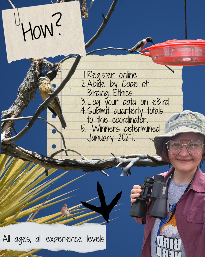 - The bird must be observed within the boundaries of New Mexico and in the corresponding month period: Jan. 1–Dec. 31, 2026, when seen.